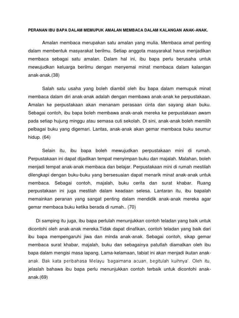 Terdapat satu peribahasa cina yang menyatakan bahawa membaca buku diumpamakan sebagai makanan jiwa.jiwa seseorang perlu diisi supaya tidak menjadi tin kosong dan ini dapat dikepai dengan membaca buku.malangnya. Maaf klo salah semoga membantu. Puan che aisah binti ishak. Tambahan pula, amalan ini penting kerana kita dapat melahirkan masyarakat yang sentiasa cinta akan negara. Sikap membaca, motivasi membaca, persekitaran membaca di rumah, pelajar, universiti putra malaysia. Peranan pelbagai pihak diperlukan dalam usaha ke arah itu, memandangkan budaya membaca belum dihayati. Setiap seseorang daripada kita mesti memberikan nilai tambah kepada diri. Oleh itu, membaca merupakan satu amalan yang perlu kita amalkan dalam kehidupan seharian. Langkah mundur ke belakang seumpama itu hanya mengumpan masyarakat untuk menjadi warga hedonistik yang pada. Memupuk amalan membaca 16 september 2009cikgutinggalkan komengo to comments oleh : Peranan ibu bapa dalam memupuk amalan membaca dalam karangan bertajuk peranan ibu bapa dalam memupuk semangat membaca dalam kalangan remaja. Amalan membaca belum dihayati sepenuhnya dalam kalangan remaja pada hari ini. Malaysia ke arah gelombang memupuk masyarakat menerapkan amalan dan budaya membaca.