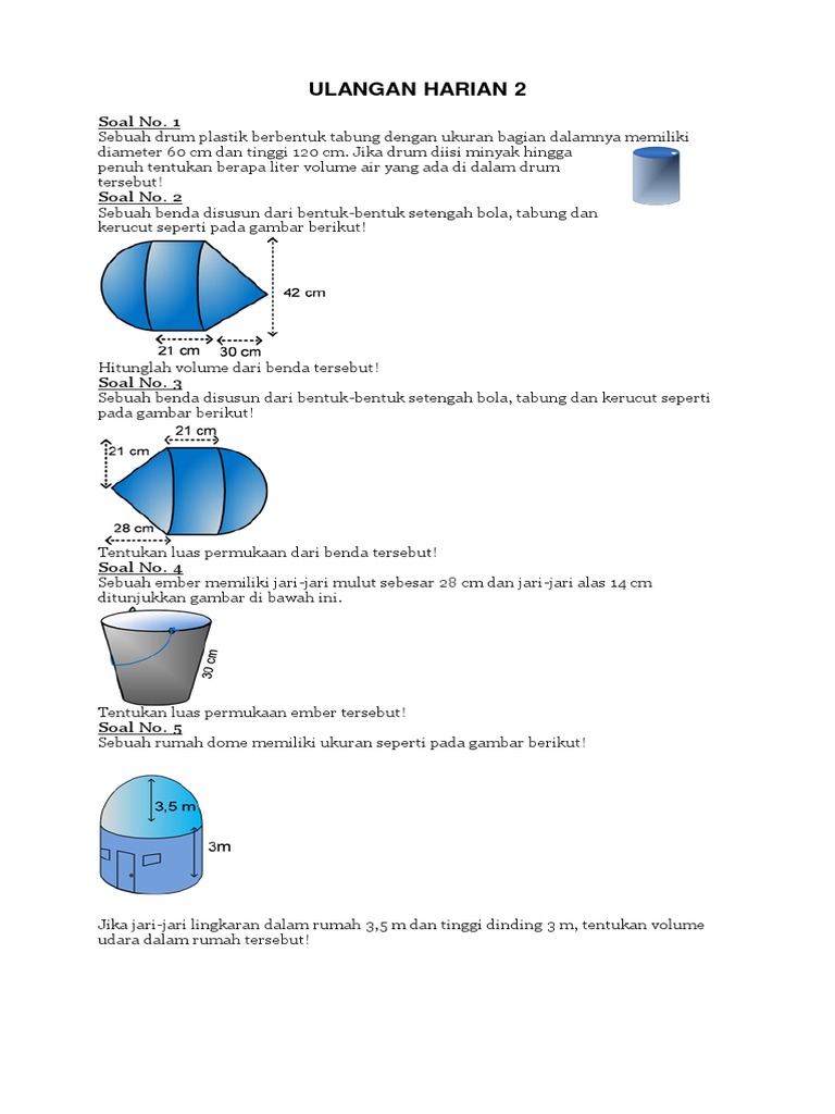Ulangan Harian 2 from imgv2-1-f.scribdassets.com Ukuran dari benda tersebut dapat diperhitungkan berapa banyak volume yang dapat diisi. Luas permukaan tabung merupakan besaran yang menyatakan ukuran dua dimensi suatu bagian permukaan yang membatasi tabung dengan jelas. Luas permukaan dari tabung sangat mempengaruhi ukuran dari tabung, berukuran kecil atau besar. Luas permukaan gabungan bangun ruang merupakan luas gabungan dari dua atau lebih bangun ruang. Sebagaimana yang diketahui, tabung atau silinder adalah bangun ruang tiga dimensi yang dibentuk oleh dua buah lingkaran sejajar (sepusat). Kalau ada bola di dalam suatu tabung, yang memiliki luas permukaan 200 cm2, berapakah luas permukaan tabungnya? Balok, kubis, prisma, tabung, limas, kerucut, dan bola. Ada hadiah voucher grab senilai total rp 6.000.000 dan 1 unit smartphone.
