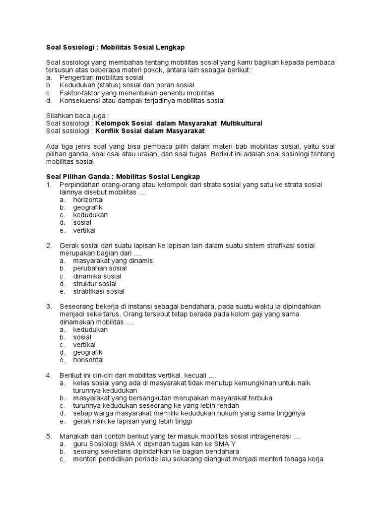 Bank Soal Sosiologi Xi Ukk 2015 Pdf from imgv2-1-f.scribdassets.com Soal essay mobilitas sosial dan jawabannya. We did not find results for: Maybe you would like to learn more about one of these? Check spelling or type a new query.